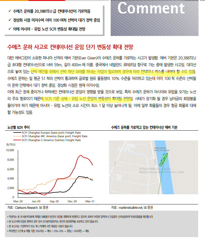 | 컨테이너 운임 업데이트: 1Q22까지 SCFI상승 전망 유지, 컨테이너 박스 회전율의 하락, 이후 초과공급 우려 (0) | 2021.08.24 |