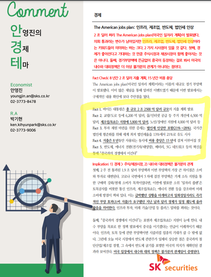 | 미국의 친환경 발전 비중 확대: 신재생에너지(풍력, 태양열) 확대, 전기로 동력 일원화(전기차), 이에 따른 밸류체인(전기차 충전기, 송전, 전선 등) (0) |