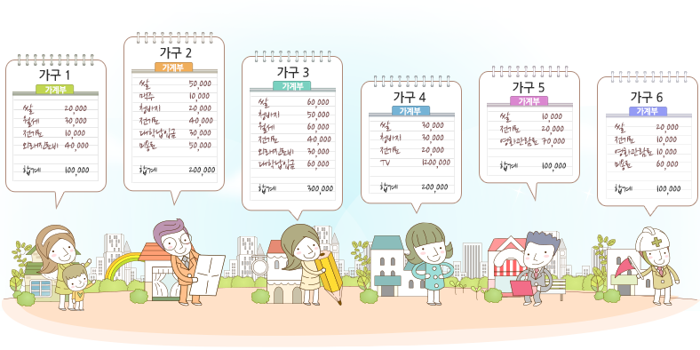아래는 이 나라 여섯 가구의 1년 동안의 소비지출을 기록한 가계부입니다.