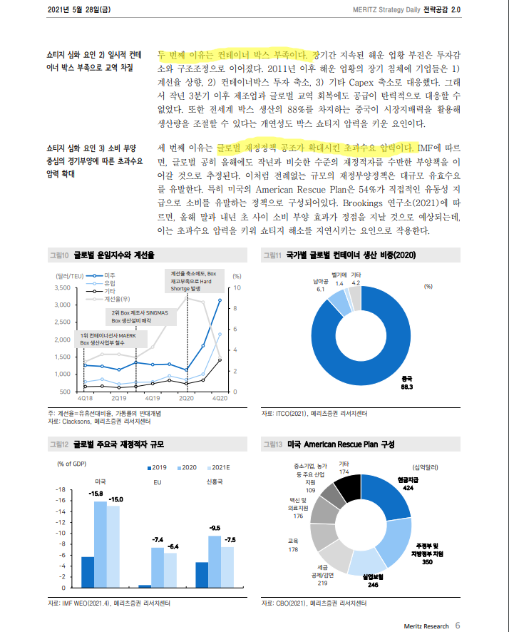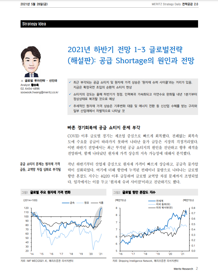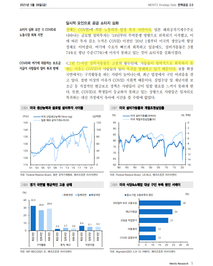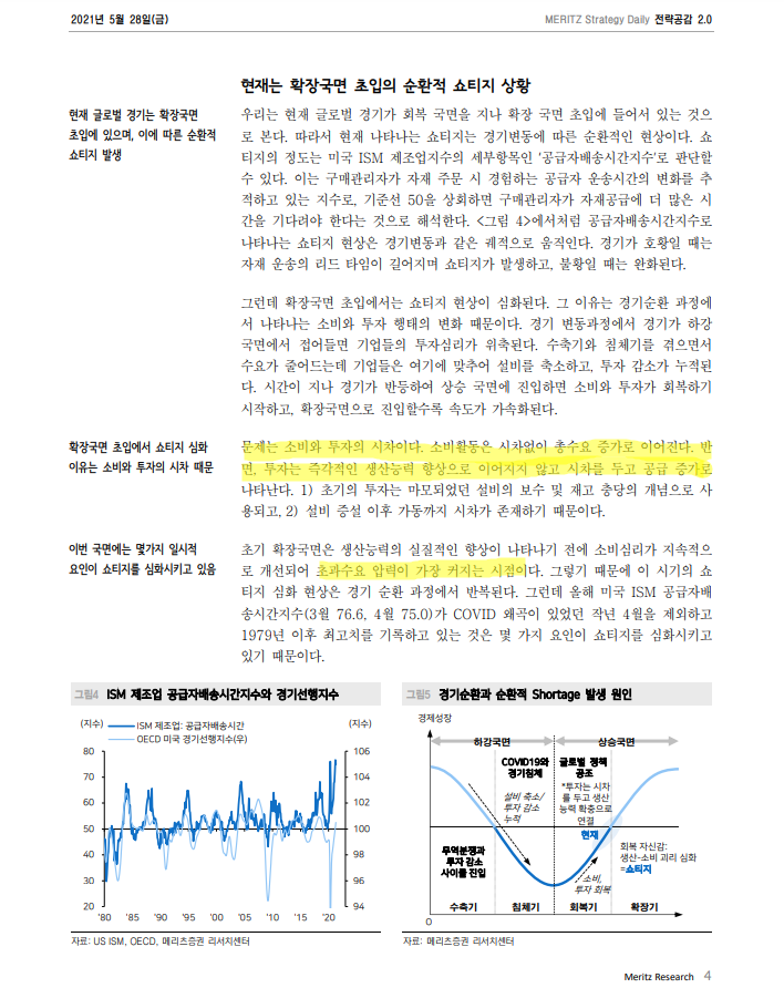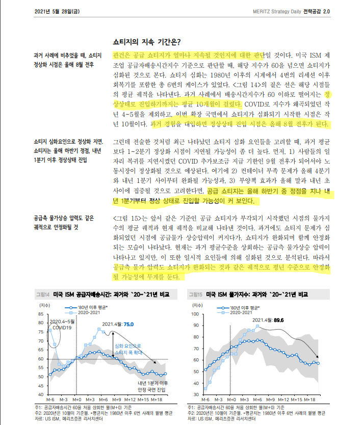 - 공급자 쇼티지가 본격적으로 시작된 것이 작년 10월이므로, 올해 10월정도 즈음 공급자 쇼티지가 정상화 될것. 공급자 쇼티지에 의한 인플레이션 상승압박도 연말에 대부분 정상화될 것을 추정
