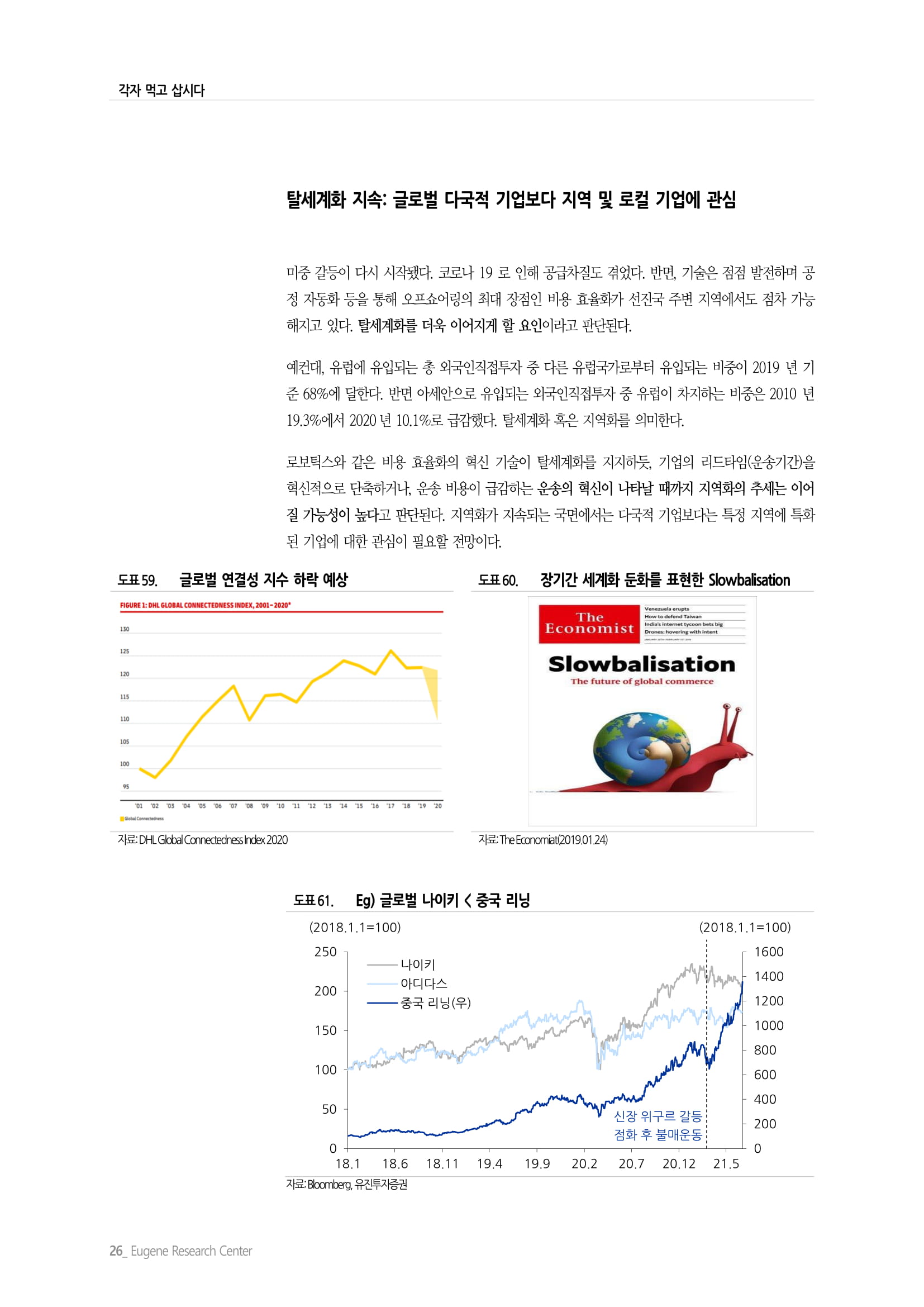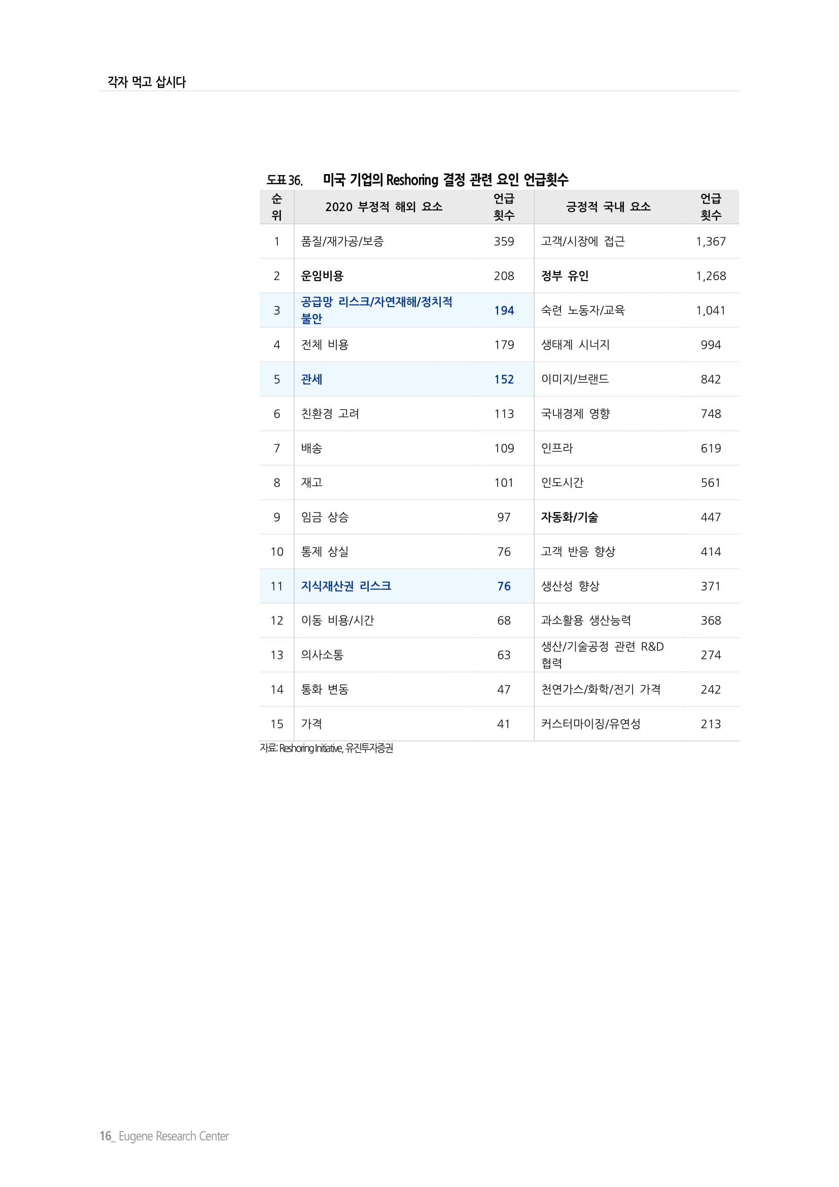 - 탈중국 리쇼어링 진행 중: 리쇼어링의 원인은 대표적으로 정치적 이슈로 해석됨.
