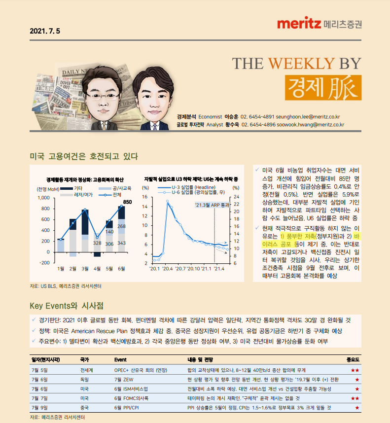 210706_경제맥: 고용이 되살아 나고 있다(정부의 이전소득 감소) -> 공급자의 노동력 이슈 수그러들 것, 중국의 생산자물가 하락중-> 중국은 업스트림 제조업이 많기 때문에 원가안정을 예상해 ..