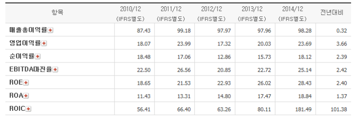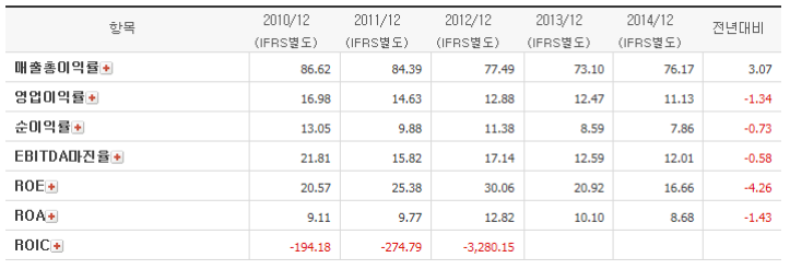 (CJ오쇼핑 수익성지표, 출처: 다음금융)