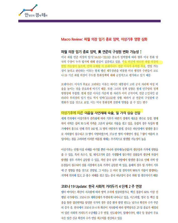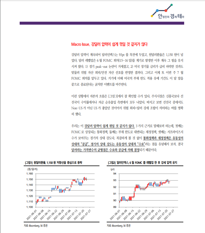 210726_안영진의 경제테마: 강달러 지속될 듯, 달러의 공급(재정정책, 통화정책)은 줄어드는 반면 수요는 증가, 폭염에 의한 밀 등 곡물 원자재가격 상승