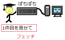 ひとかたまりになっている検索結果の中から(実際に処理をするために)1件抜き出すのが「フェッチ」です。