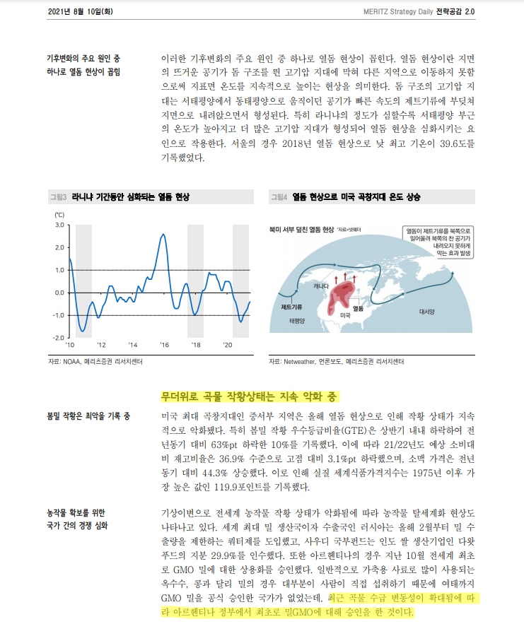 210810_전략공감2.0: 기후변화에 따른 곡물 중개업자의 마진 상승, 기후변화로 인한 공급감소 및 중국의 가축용 수요증가로 인한 곡물가격 상승