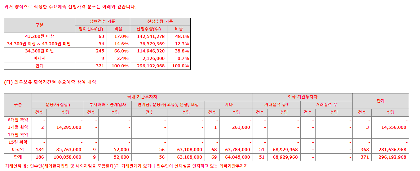 기관의 입장에서도 좋은 주식이라고 생각하는 종목에 대해서는 더 많은 물량을 받기 위해 확약을 걸 것이고, 일반인 투자자는 확약 비율이 높으면 그만큼 좋은 주식이라고 생각해볼 수 있다.
