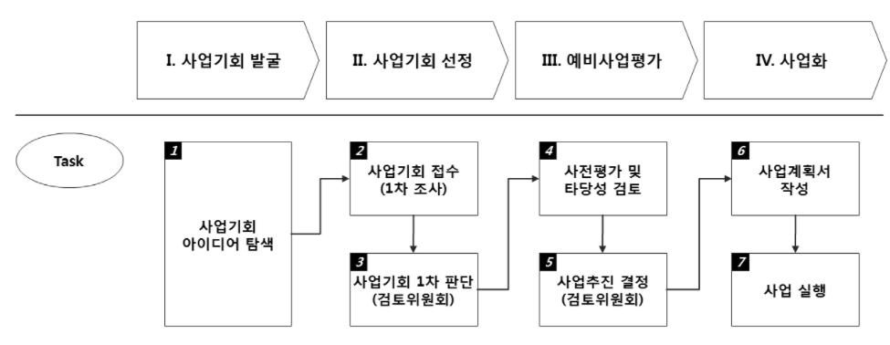 위의 세 가지로 일단 시장을 구조화 하면, 구체적인 시장을 타겟팅하기 한결 용이해진다. 그렇다면 그 이후 실제적인 세부 시장은 어떻게 찾아낼 수 있을까? 생각 보다 단순한데, 정보수집, 자료조사, 사내외 제안, 지시사항, 전문가 면담, 토론 등의 방식을 통해서 사업기회 아이디어를 탐색한다.