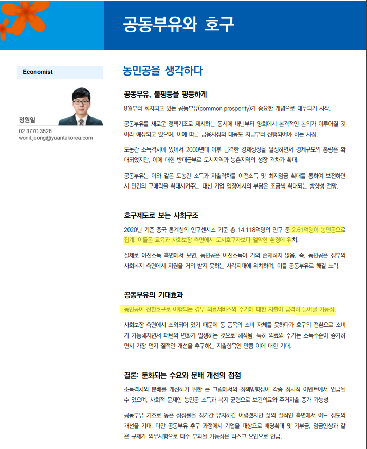 - 중국 정부 속내: 둔화되는 소비(수요)를 공동부유를 통한 소비층 확대(호구제도 개선)로 해결하겠다