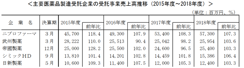 国内製薬企業における新薬上市は限定的と見込まれる。新薬製造に伴う既存製品の外部委託移行への機会の減少。