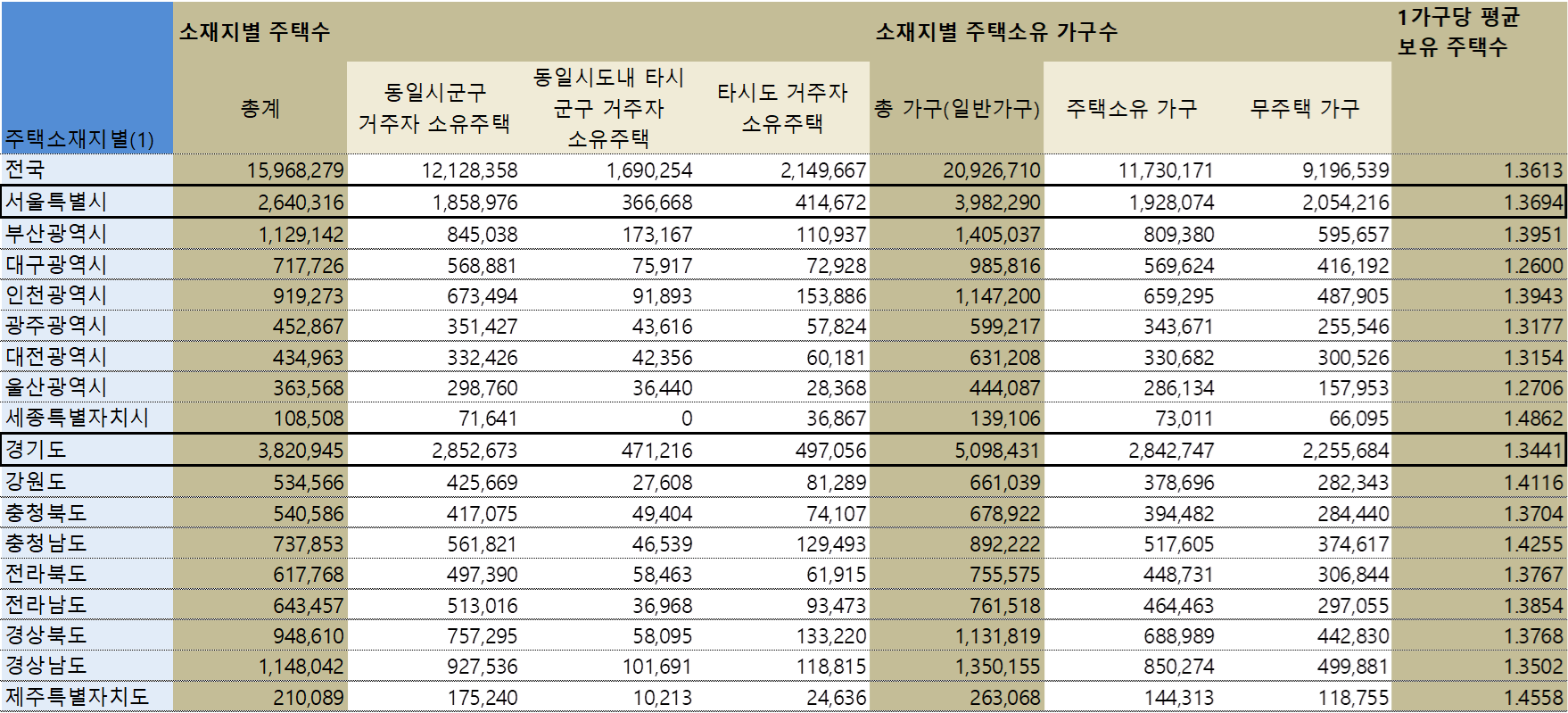 - 올바름의 시선에서 보면 다주택자에 대한 규제를 강화하여 다주택 가구수가 보유한 잉여 주택을 무주택 가구로 돌리는 것이 합리적이지만, 건설사 입장에서 보면 이는 신규 주택수요 감소로 이어지기 때문에 악재