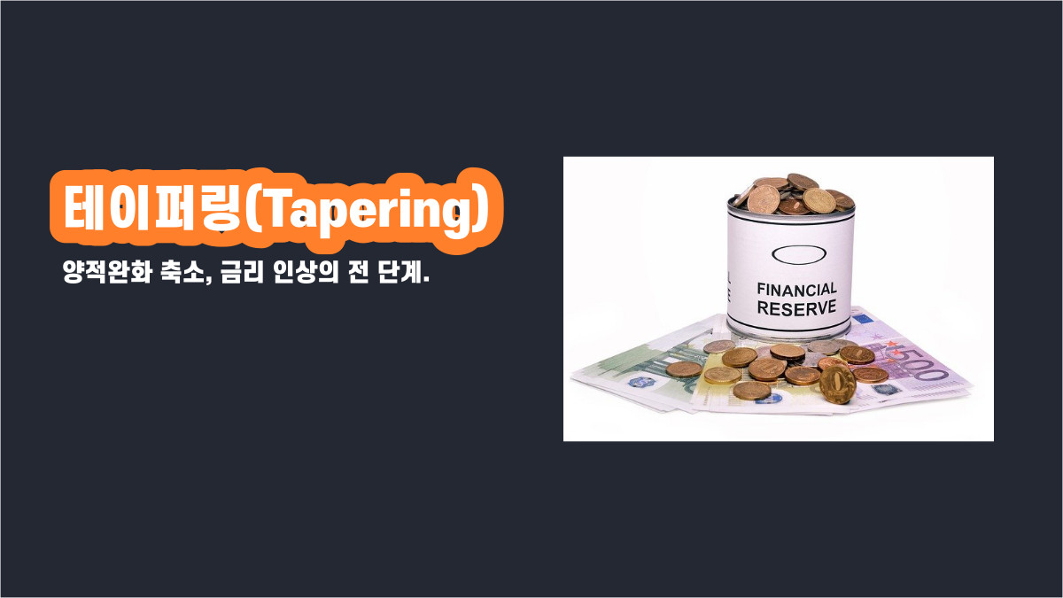 테이퍼링은 양적완화 규모를 줄이는 통화 정책입니다. tapering이라는 단어가 뜻하는 바대로 한꺼번에 줄이는 것이 아니라 점진적으로 줄이는 것입니다. 점진적으로 줄이는 이유는 그렇게 하지