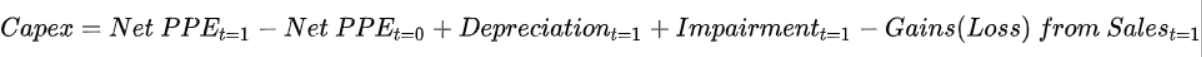 만약 정보가 제공되지 않을 경우 다음 방법으로 Capex를 계산할 수 있습니다.