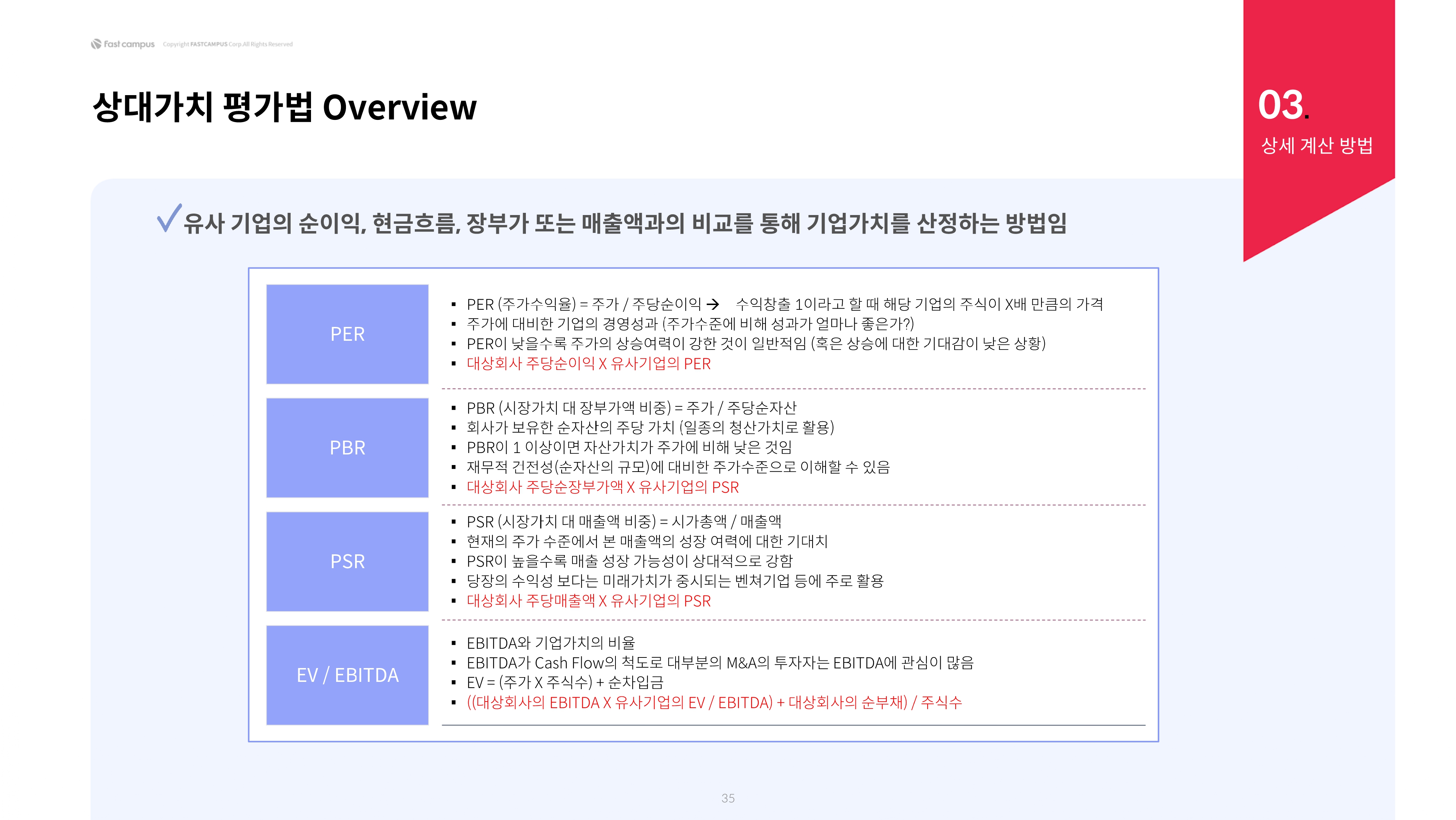 06 상대가치_상대가치 평가법 프로세스, 07 상대가치_상세 계산 방법, 08 상대가치_DO & Don't, 09 상대가치_예제 풀이