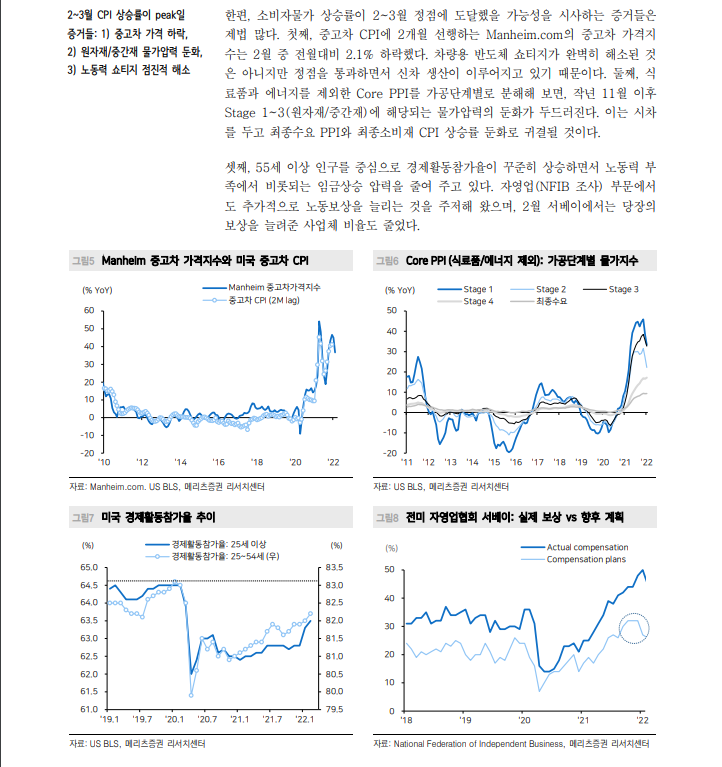 - 수요요인: 노동자의 노동시장으로의 복귀가 시작되면서 높은 임금상승이 점차 둔화