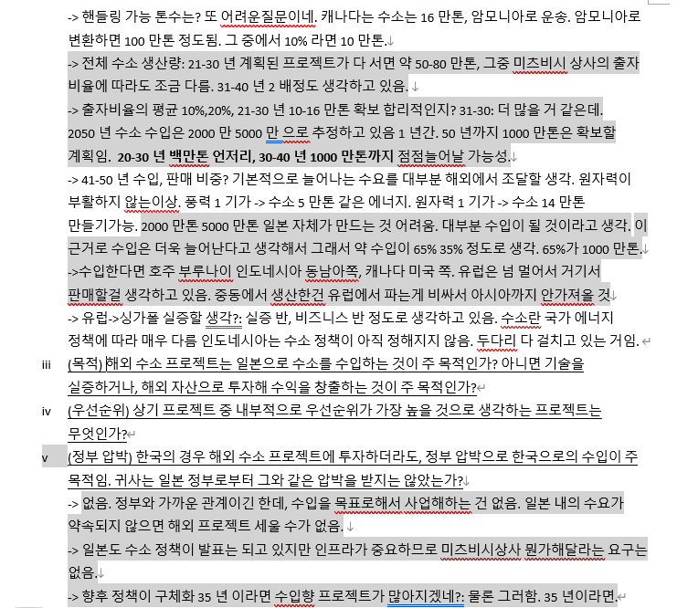 - 구분기호를 사용하여 가독성 높이기: 일본 국내 수소 수요 ‘30년 6-7백만톤 ➡ ’50년 4천만톤으로 성장할 전망