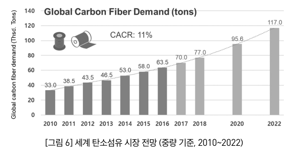 - 탄소섬유의 시장 규모는 Q베이스 2022년에는 117,000 톤 규모