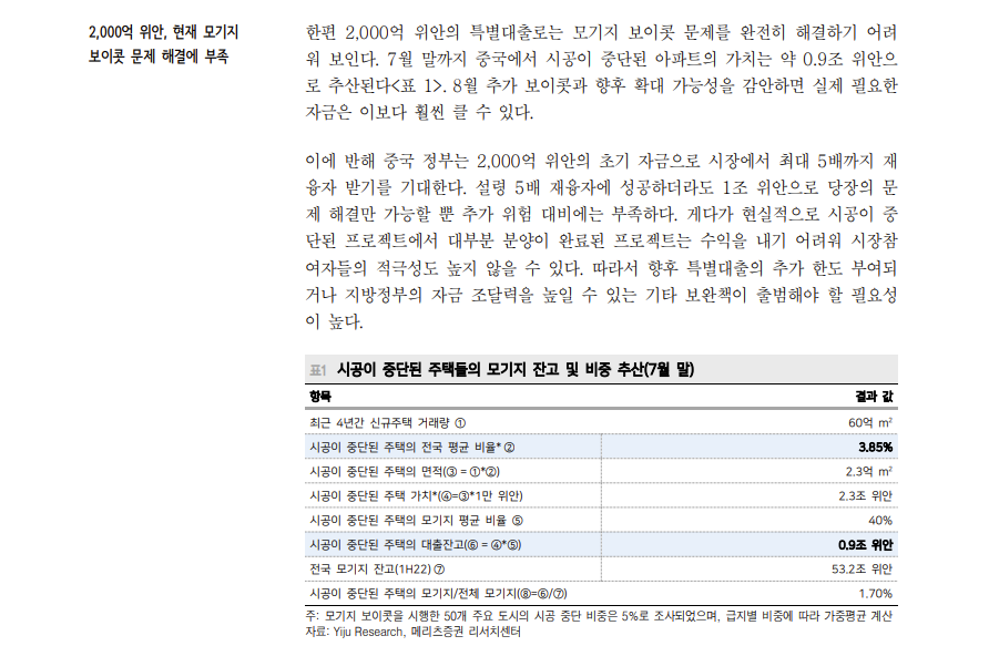 1. 시공 중단된 건물의 시공 재개 통한 부동산 수요 심리 부활: 지방채로 마련한 추가 자금으로 건설 프로젝트 펀딩 지원