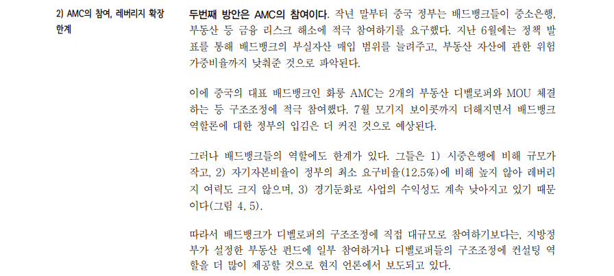 - 작년 말부터 중국 정부는 배드뱅크들이 중소은행, 부동산 등 금융 리스크 해소에 적극 참여하기를 요구