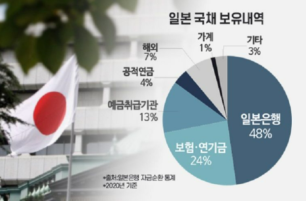 그럼에도 불구하고 일본 정부가 파탄할 가능성은 적어보인다. 이유로는 일본 국채의 90%가 자국 보유이므로 최악의 경우 BOJ가 엔화를 찍어서 갚아버리면 되기 때문이다. 즉, 외채가 아닌 국내채이기 때문에 외부로부터 신뢰가 깨질일 자체가 없는 것이다.