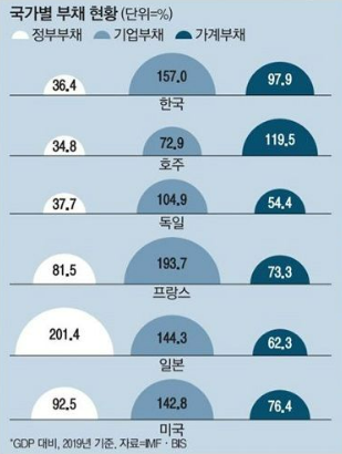 또한, 정부부채는 세계최고 규모이나 기업 부채 및 가계 부체는 오히려 한국보다 건전한 수준이다.