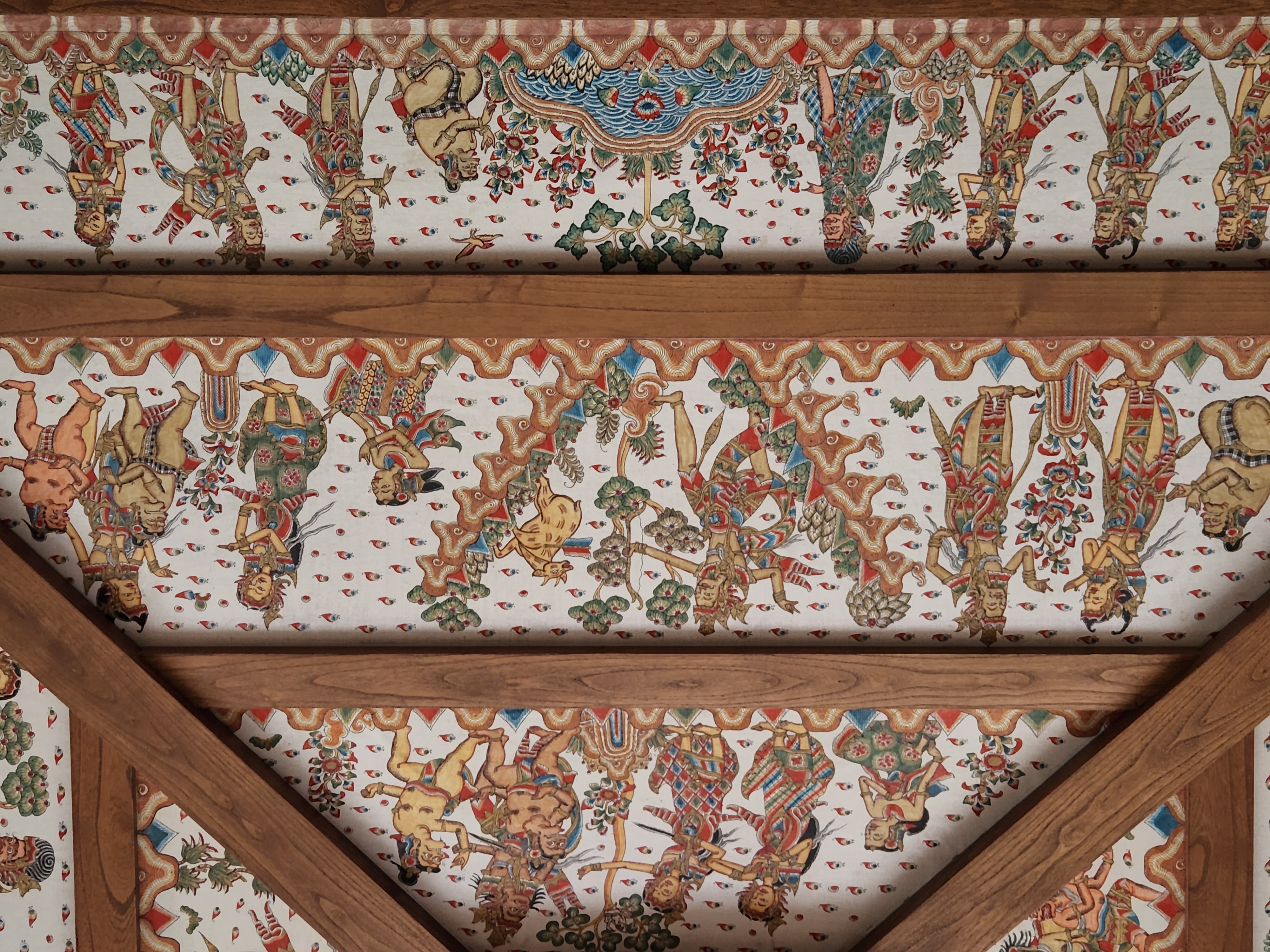 로비에서 천장을 잘 보면, 발리 전통 삽화같은 것들이 빼곡히 그려져 있습니다. 놓치기 쉽지만 로비 이곳 저곳을 보면 바닥, 천장, 책상, 의자, 장식품까지 발리 이미지를 브랜딩하기 위한 디자이너들의 고심과 노력이 엿보입니다.