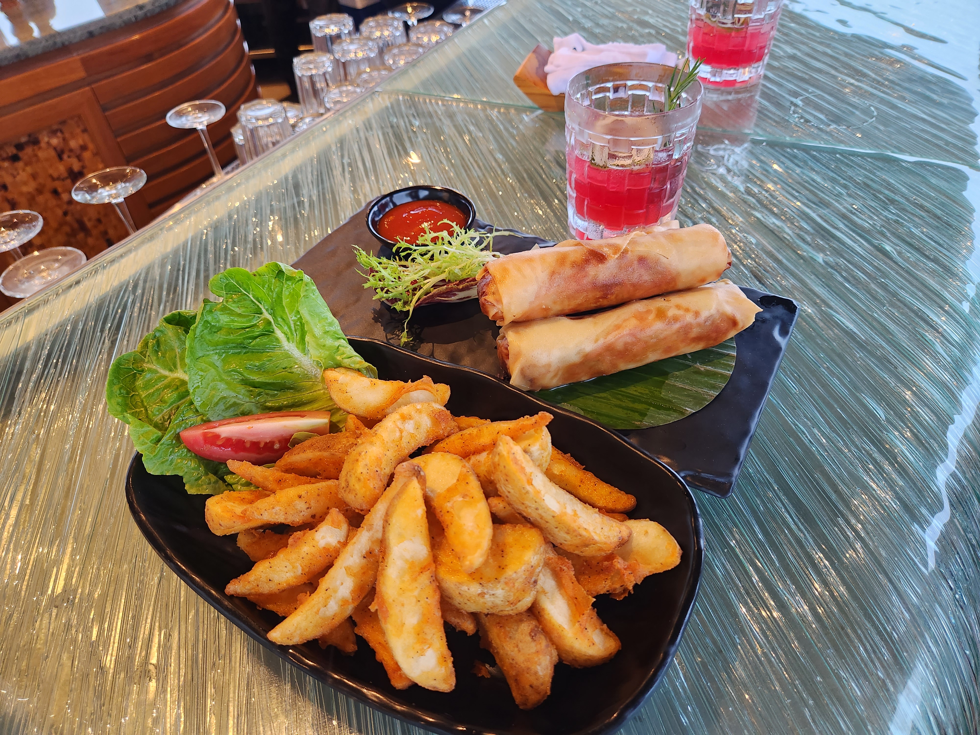 3시쯤 입장해서 저녁시간까지 꽤나 시간이 남은지라 Luna bar에서 간단한 스낵을 시켜 요기를 했습니다. Fries와 Shrimp Spirng Roll 입니다. 새우춘권이 맛이었습니다. 스프링롤안에 통통한 새우가 가득했는데, 함께 들어있던게 파파야 인지 당근인지 잘 모르겠습니다.