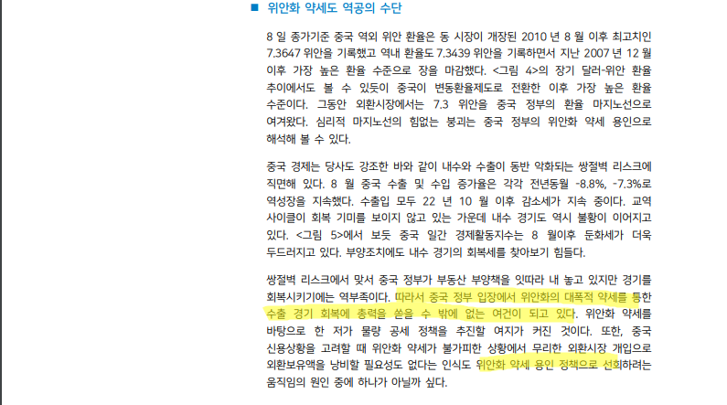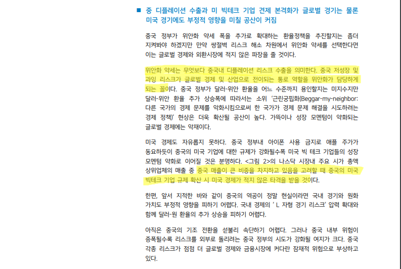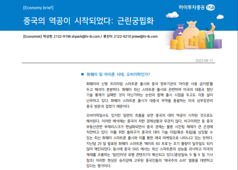 230911_중국의 역공이 시작되었다, 근린궁핍화: 對중국 수출 감소로 인한 제조업 및 IT업 타격, 위안화 약세 기조 下 중국발 디플레 세계로 수출