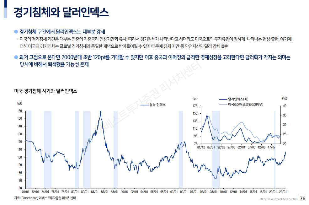 - 외국인 자금 변화 없음: 국제 정세 불안으로 달러 가치 상승하고 있으며, 달러가치가 떨어질 요인 보다 상승할 요인이 크기 때문에 당분간은 외국인 자금 유입되지 않을 가능성. 단, 달러 가치 고점 → 저점으로 변할 타이밍에 외국인 자금 유입될 가능성 높음 (-) [ H. 달러 인덱스 추이]