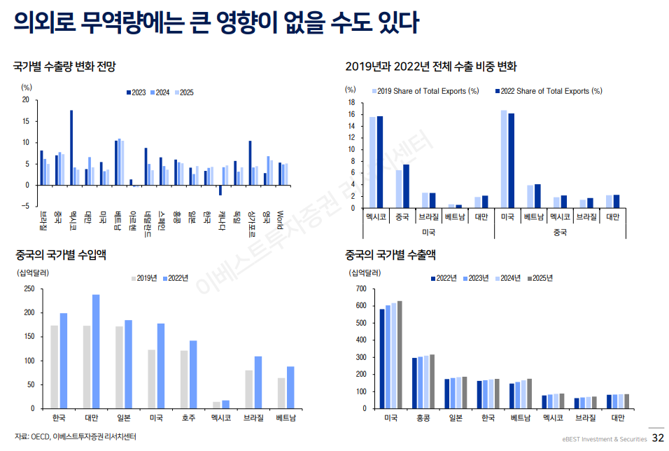 - 공산품 공급 변화없음: 중국 디커플링 기조이나 이는 반도체 및 2차전지 등 전략적 상품에 한한 것이며 값싼 공산품에 대한 수입액 변화없음 (-) [ G. 미국의 對중국 무역량 추이]