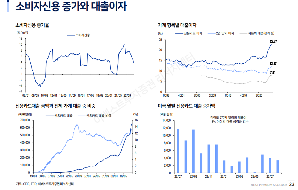 - 개인 자금 감소: 소득 높아지는 현상 보이지 않으며, 높은 이자율로 인한 부채 반환액 확대로 개인 자급 유입 가능성 (↓)