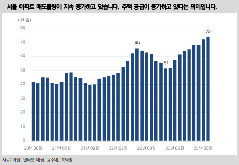이에 따라, 부동산 공급은 다주택자 공급을 의미하는 주택 매도물량으로 보는 것이 더 적절하며, 매도 물량은 계속 증가하고 있음