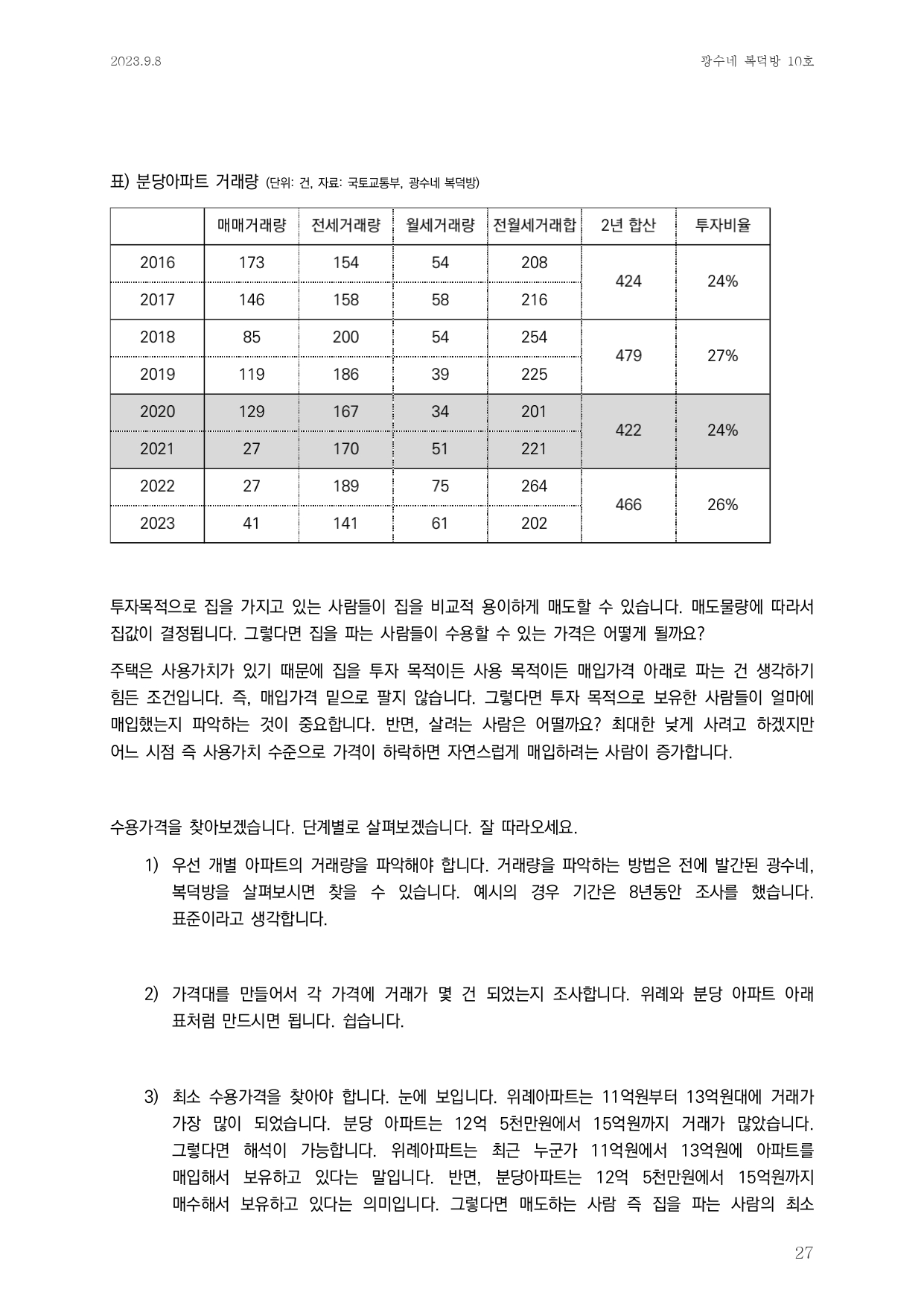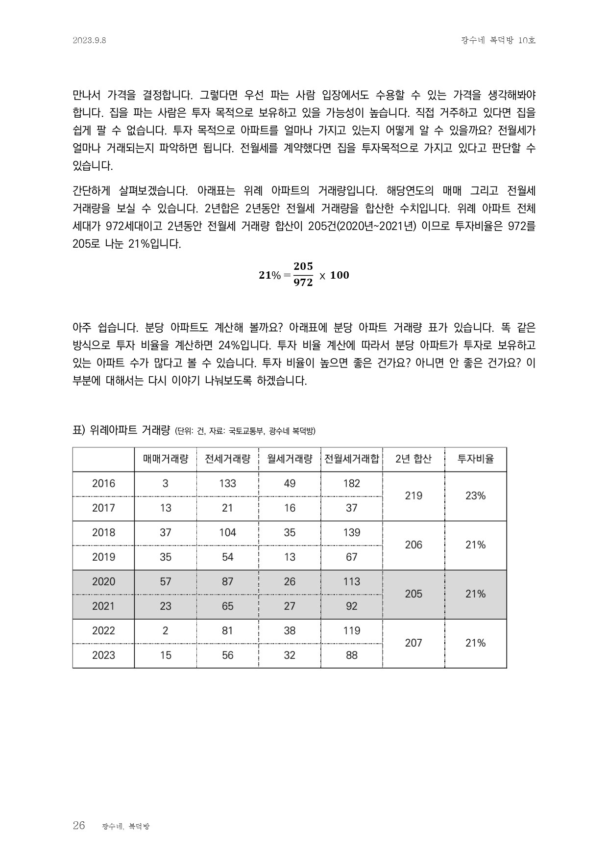 - 전월세거래건수를 2년이라는 기간으로 설정하여 계산하는 이유는 전월세계약 기간이 2년이기 때문