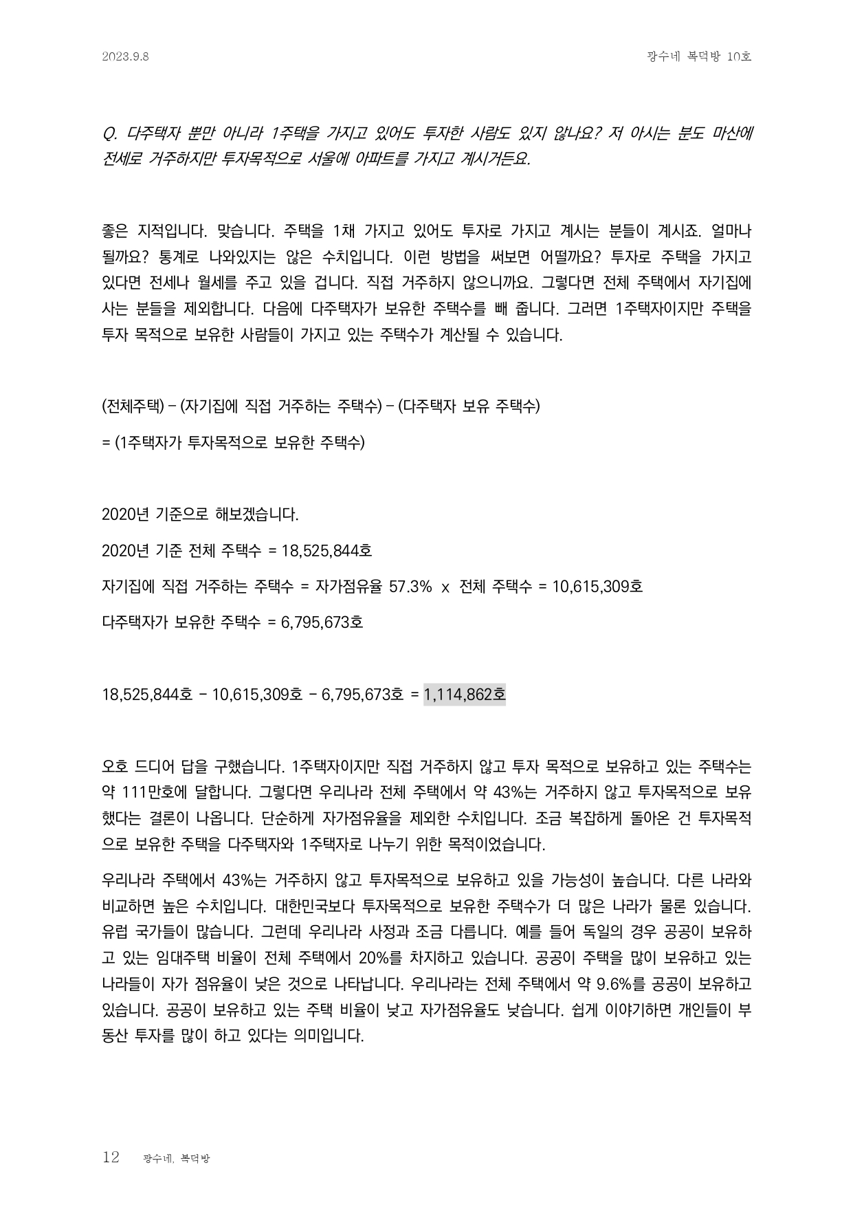 부동산 공급 = 기존 다주택자 공급 + 신규 공급이므로 신규 공급만으로 공급이 많다 적다 판단하는 것은 옳지 않으며, 기존 다주택자에 의한 공급도 봐야함
