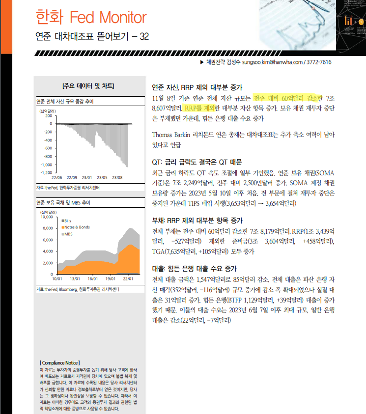 231123_연준 대차대조표 뜯어보기: QT속도 감속, RRP만 감소