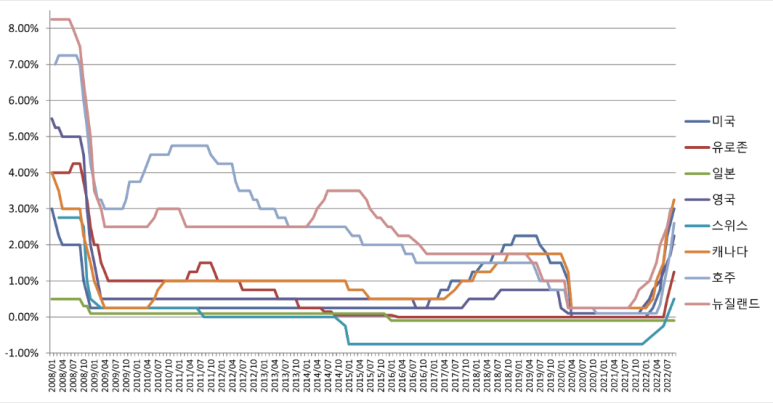 (그래서 사실 뉴스에서 '제로 금리의 종말'이라고 하는 것은 기준금리 0%의 시대가 끝났다는 뜻이 아니라, EFFR을 0%~0.25% 사이로 유지하려고 하던 초저금리 시대가 끝났다는 것을 의미한다.)