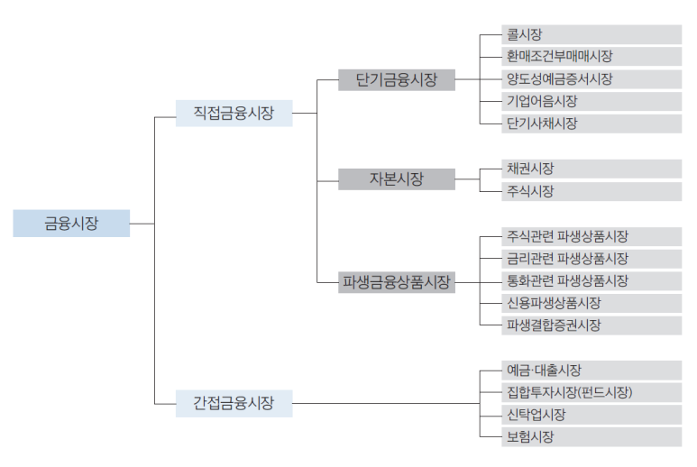한국은행에 따르면 금융시장은 크게 직접금융시장과 간접금융시장으로 나뉜다.