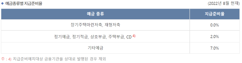 한국 시중은행의 지급준비율(지준율), 한국은행