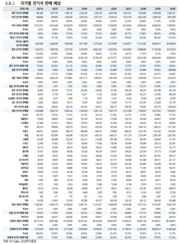 - 전체 차량 판매량 대비 전기차 판매 비율 미국 8.12% 대비 2.5배 이상 高