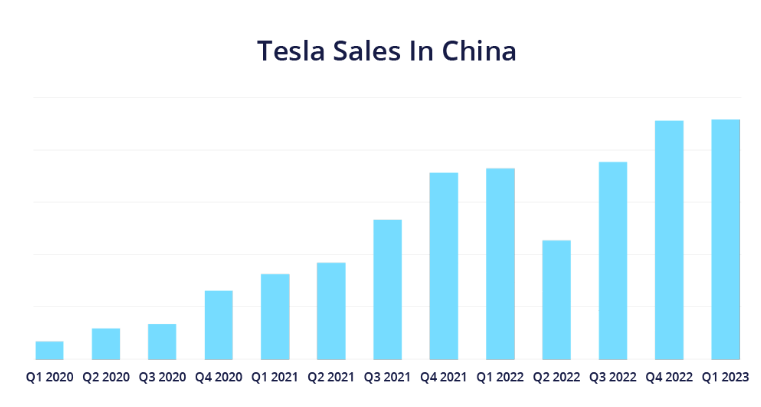 테슬라의 중국 매출 규모 추이