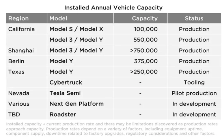 테슬라 생산 시설 및 캐파