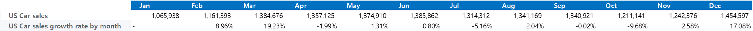 - 미국 전체 차량 판매는 월평균 130만대 규모이며 4분기 늘어나는 경향 보이는 반면, 전기차 판매량 꺾이는 모양새