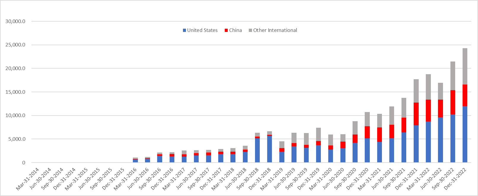테슬라의 지역별 매출 규모 추세