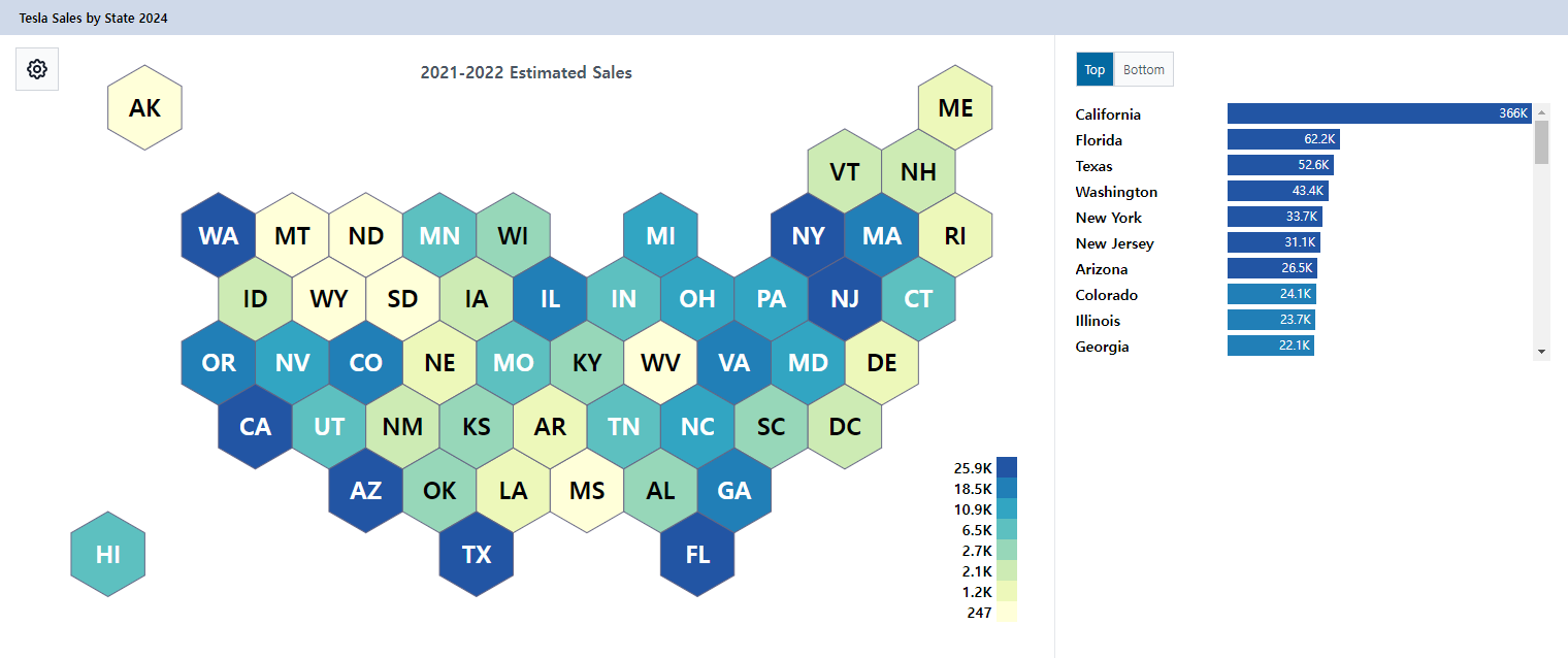 테슬라의 미국내 주별 매출 규모