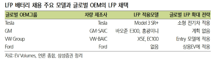 - 주행가능 거리는 현재 NCM이 우세하지만 LFP 기술 발달에 따라 비슷한 수준으로 올라오는 중
