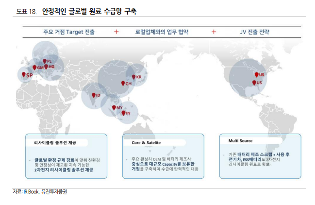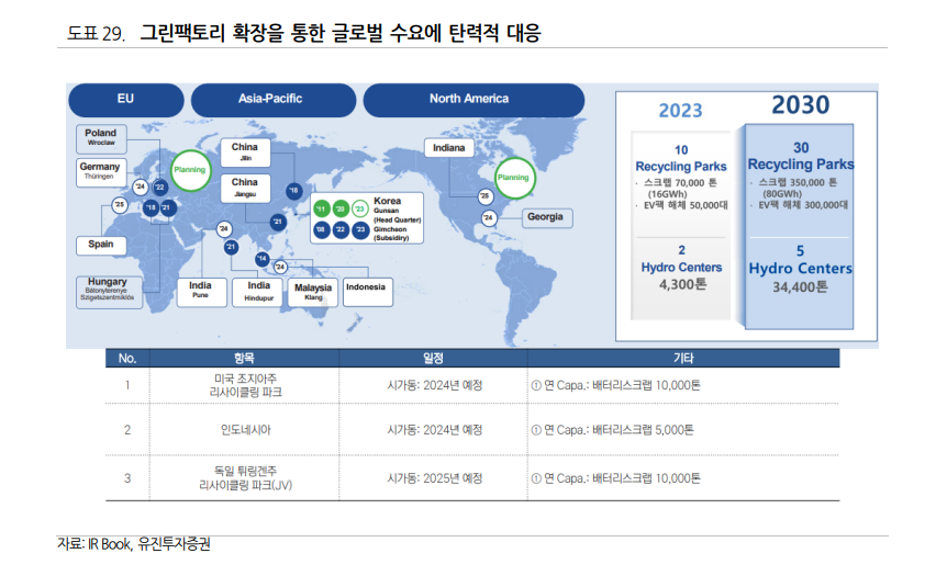 또한, 미국 유럽 등 주요국 내 리사이클링 센터 설립 계획 중이며, 리사이클링 센터 1기당 CAPEX 500억 규모