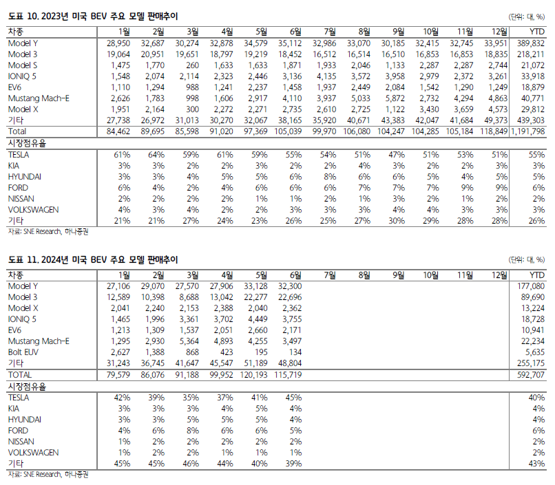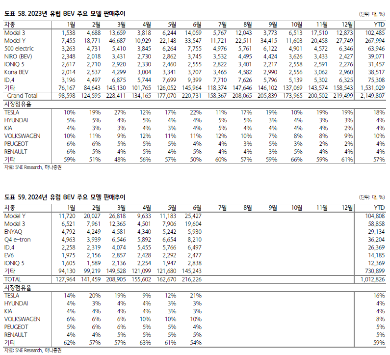 - 그러나 국내 전기차 시장은 23년 연간 판매량 15만대 수준으로, 미국 119만대 중국 527만대 유럽 210만대와 비교 시 매우 적은 수준이라 무시해도 문제 없음