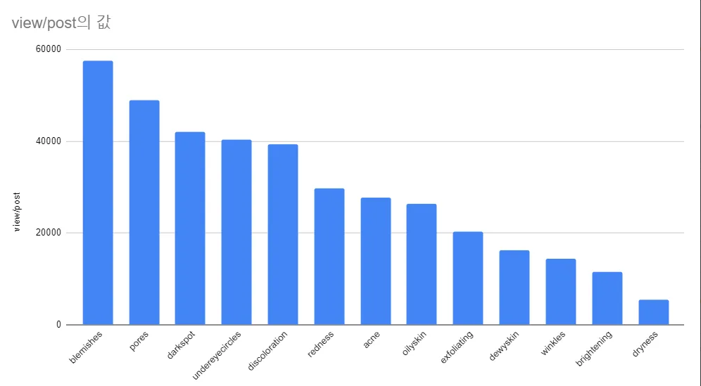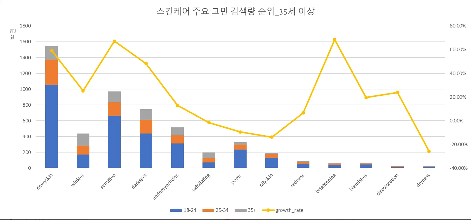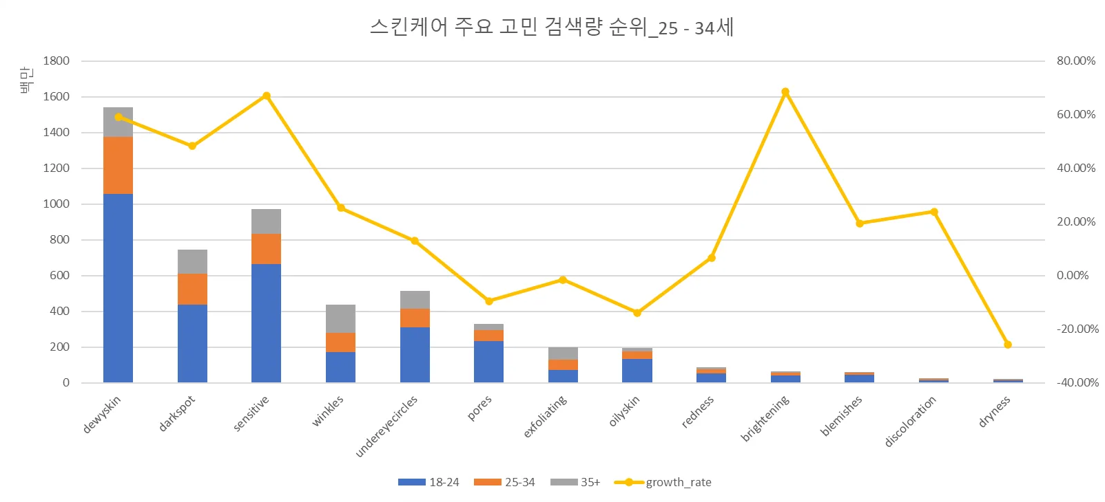 - (18 ~ 24세) 물광 → 민감성 → 다크스팟 → 다크서클 → 모공 → 주름 → 지성피부 順