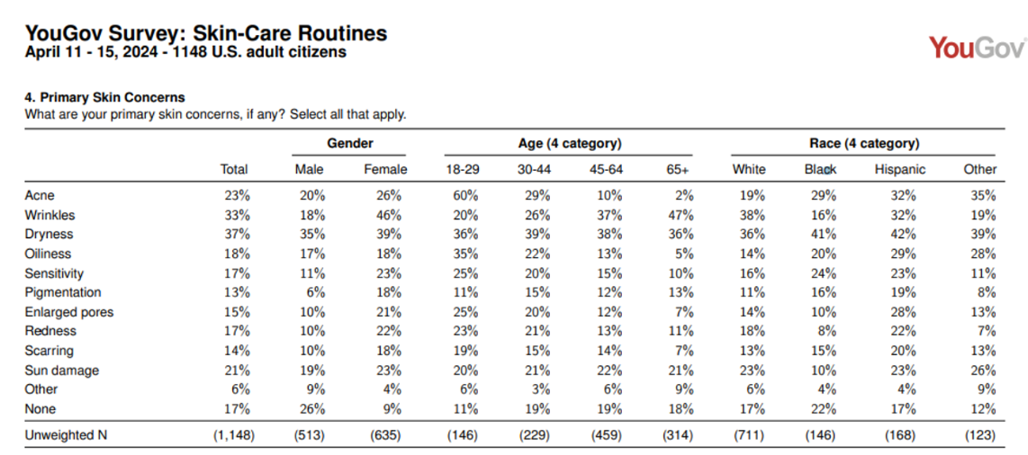 YouGov 설문 조사 결과, 색소 침착・모공・주름 시장의 타겟 고객 충분히 많다는 판단