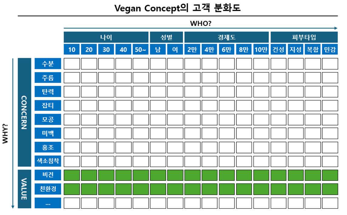 - (화장품 시장에서) WHY축은 Concern・Value로 구성